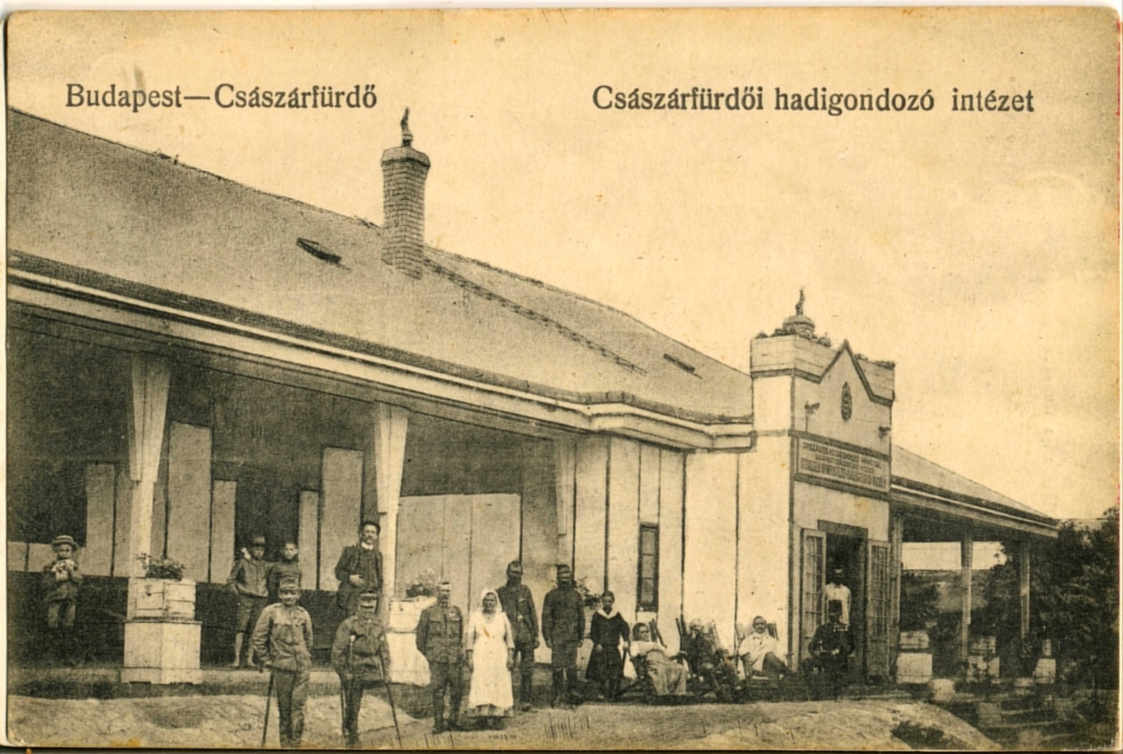 A Császárfürdőt  1915 júliusában első  intézetként használta fel és rendezte be 1296 ággyal a Hadigondozó Hivatal a rokkantak számára (igazgató-főorvos: Dalmady  Zoltán  dr.;  főorvos: Widder  Bertalan dr.).