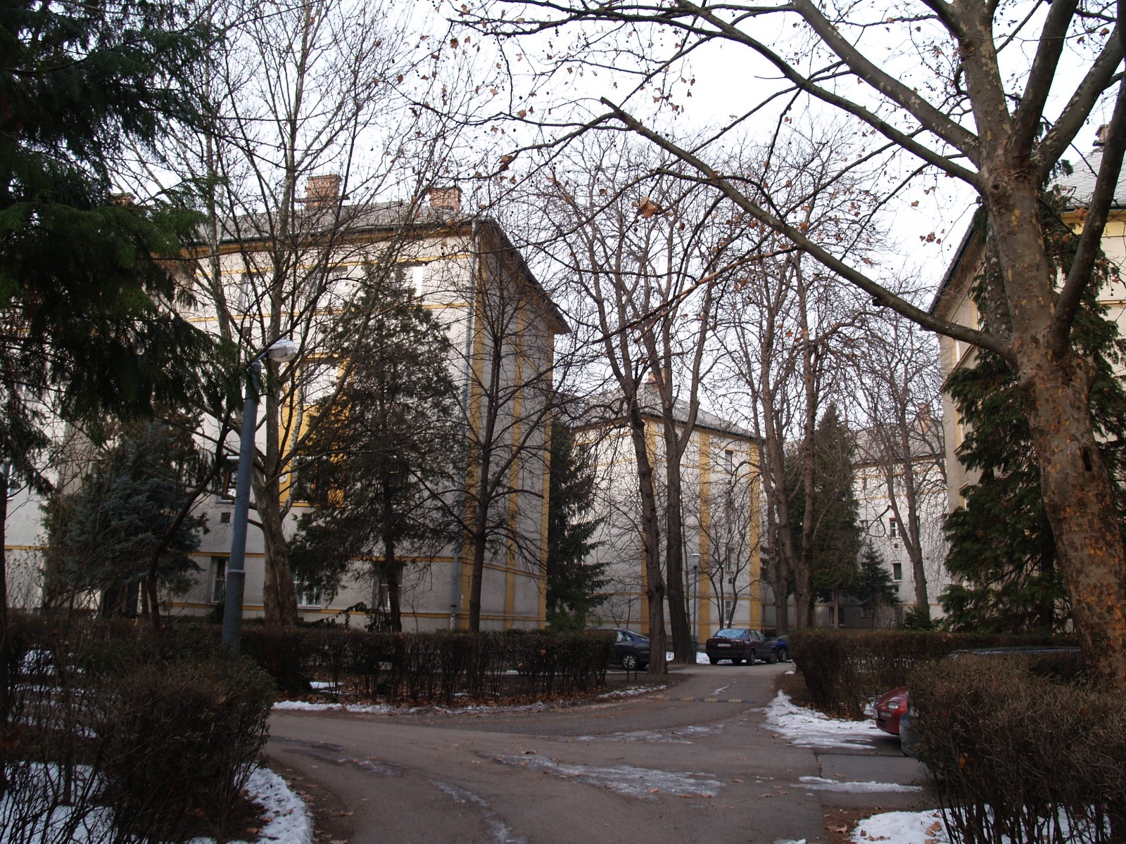 A körülkerített – később szépen parkosított – területen lazán elrendezett öt épület egységes stílusa, ugyanakkor különböző alaprajzi elrendezése, homlokzataik kapu- és saroktengelyeinek hátrahúzott megoldása, arányos és dinamikus látványa méltán vetekedik a mostani „lakóparkok” minőségével.