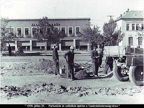 Az áruház a város főterén, a vasútállomás közelében áll. "Az áruházi igazgatás sűrűn váltakozó vezetőinek igényére az eredeti koncepció - nem előnyére - sokat változott és az építkezés elhúzódását eredményezte. Hagyományaink tárházában ilyen karakterű épület nehezen található. Az új utakat kereső, a korszerű képletből kiindult első terv a bírálóbizottság tagjai zömének a tetszését - akkortájt - nyilvánvalóan nem nyerhette el, ezért vált szükségessé az áttervezés. A második átdolgozott tervre viszont a stílusáramlatok negatív jegyeit próbálták alkalmazni." Vass Antal